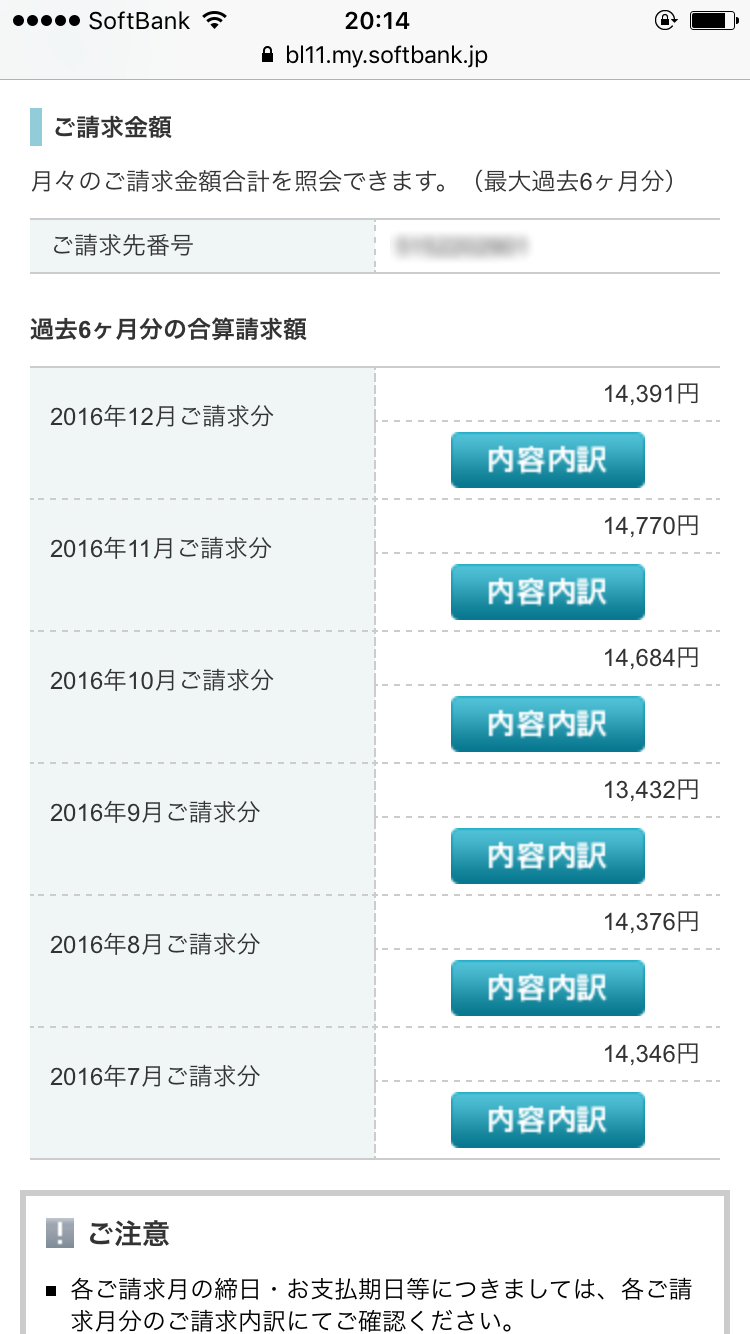 ですが、過去半年のソフトバンクの請求を見てみると、