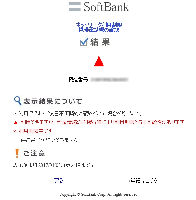 ネットワーク制限は各キャリアのサイトで調べることができます。