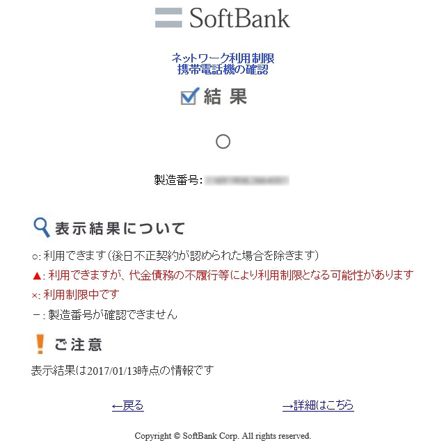 そして1月13日、契約終了なので再度調べてみたところ〇判定となっていました。
