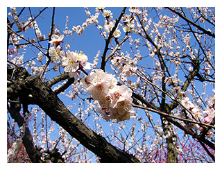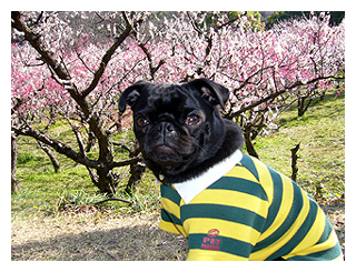 梅をバックにチョコを写していたら通りがかったオバチャンたちが「あら〜おりこうね〜ちゃんとポーズして」と。