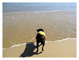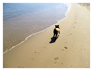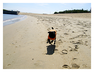 波打ち際を行ったり来たり走り回ります。 |
