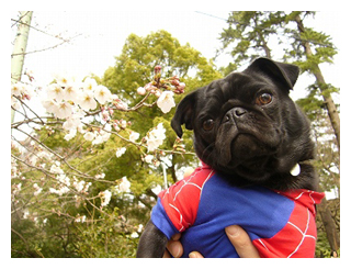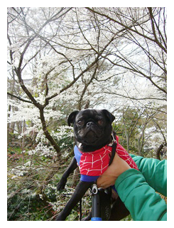 キレイに咲いている桜を見つけてチョコ記念撮影。 |