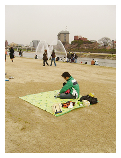 公園内はそんなに桜が多くないので川沿いへ移動します。 |