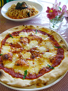 マルゲリータピザとナスのミートソーススパをオーダー。