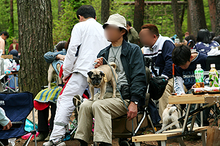 チョコはリードを外すと早速会場内を1人散策・挨拶して回る・・・あなたはほんとに飼い主要らずだね〜〜。 |