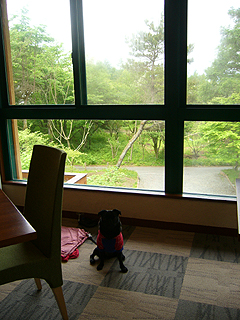 朝食へ。晴れているときはココから富士山が見えるそうです。 |