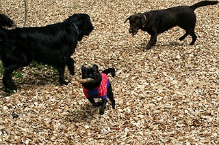 4ヶ月のパピーのレトリバーの仔とチョコは追いかけっこ。