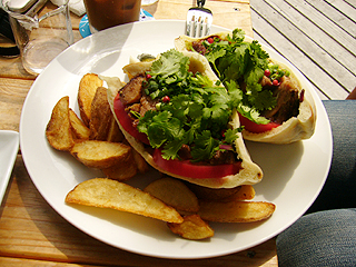 夫は焼き豚のピタサンド。