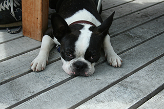 お隣の席だったボストンテリアのこいもくんです。