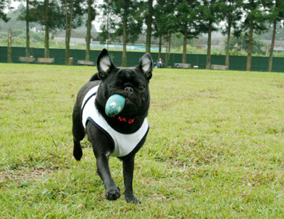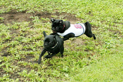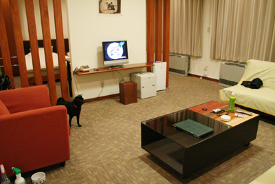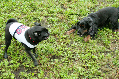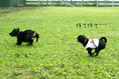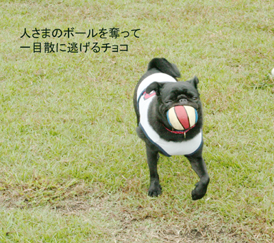 結構広いのに、犬と遊ばずに人様の遊びを邪魔するチョコ。