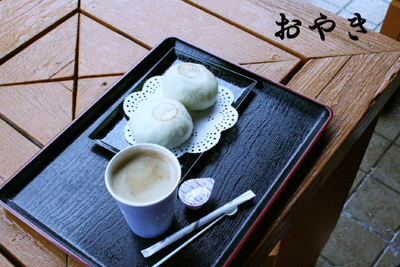 雨の中、チョコの朝のお散歩をして、われわれは朝ごはん。 |