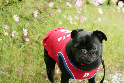 脇にコスモスが咲いていたので、チョコをパチリ。