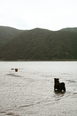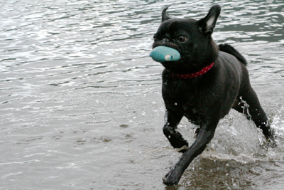 ボールを投げると泳いで取りに行くんですが、かなり湖の真ん中まで泳いでいくんです。