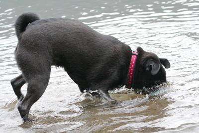 泳ぐことはできませんでしたが、ざぶざぶと水に入って遊ぶチョコの姿。
