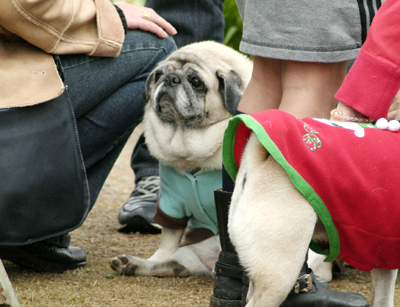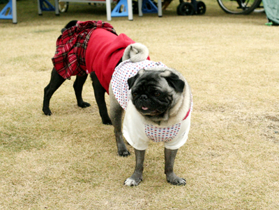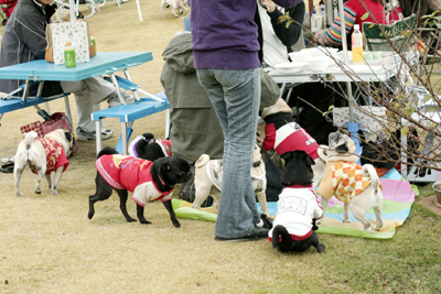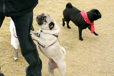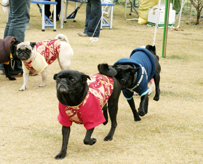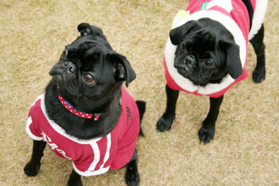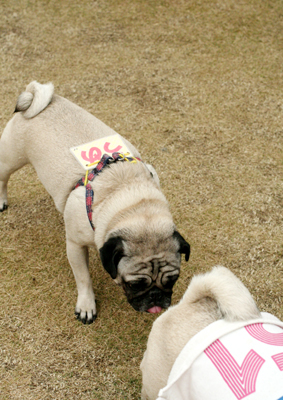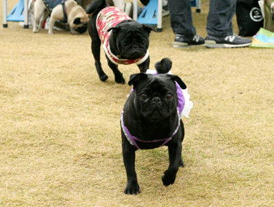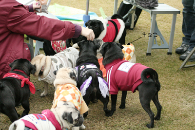 ビンゴには無関心の遊びに夢中なおパグたち。 |