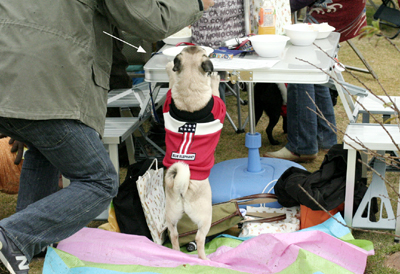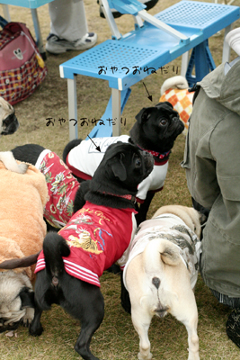 人間たちが食べてる間、パグっこは遊んでます^^ |