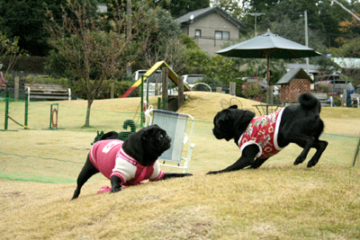 パグ達は勝手に走り回っています(笑) |