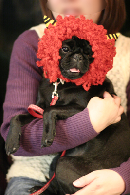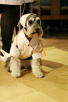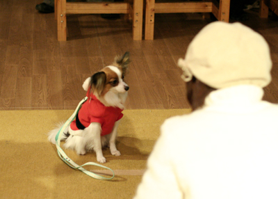 仮装大会の次の腕立て伏せゲームは(お座りと伏せを繰り返す)チョコは記録が一回で惨敗o(TヘTo) |