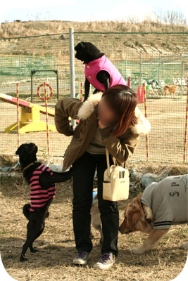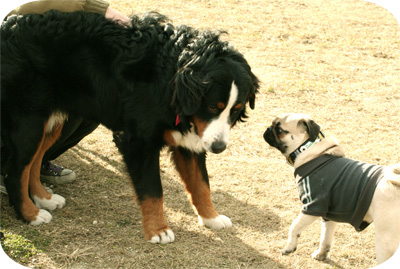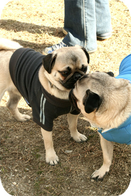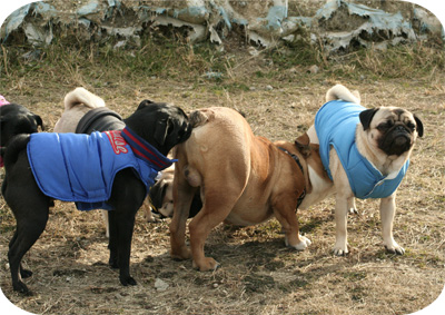 金太郎くんに猛アタックを受けるが目をつぶって固まっているどんくんと、お尻を嗅がれていても気にしていない金太郎くんと、その隙に思う存分臭ってるチョコです。 |