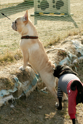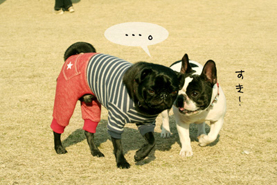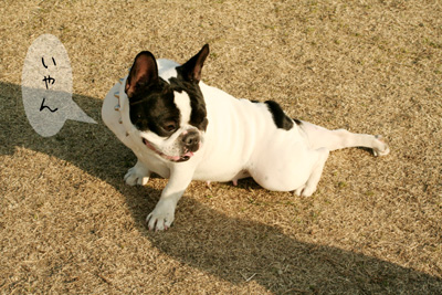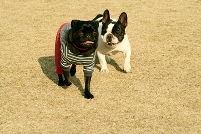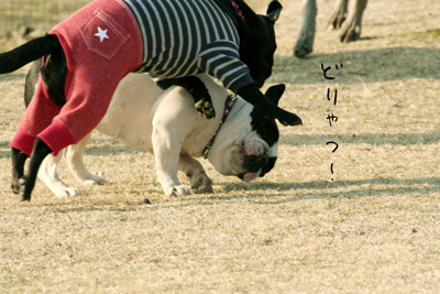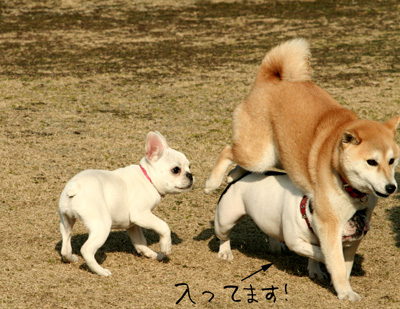 こちらのフレブルちゃんは柴ちゃんがお気に入りみたいで何故か柴ちゃんの下に潜ってました。