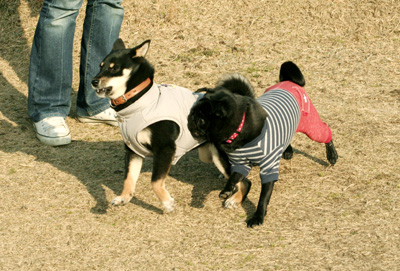 さっきまで柴ちゃんにご執心でしたが今度はチョコちゃんにロックオンです☆ |