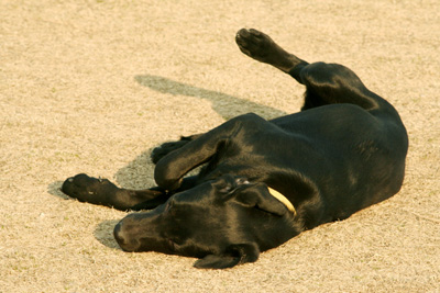 広いランでひとり死んだフリ(?)してた黒ラブちゃん。