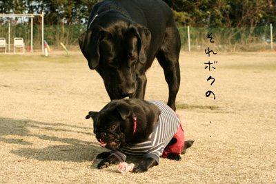 黒ラブちゃんの落としたものを横取りした模様です><