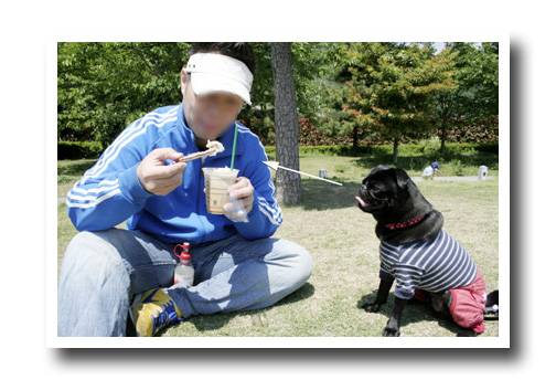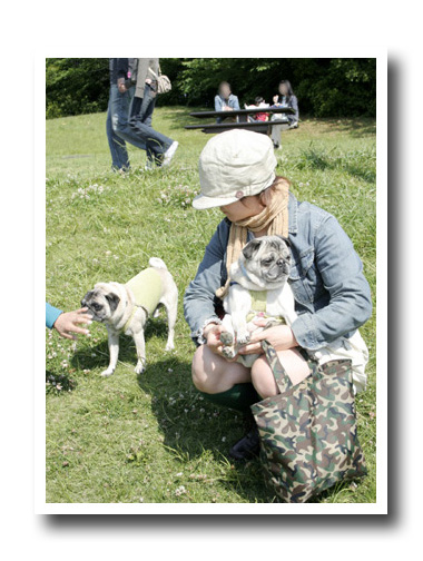 お弁当を食べていたらパグミに参加されるパグちゃん連れの人に遭遇!