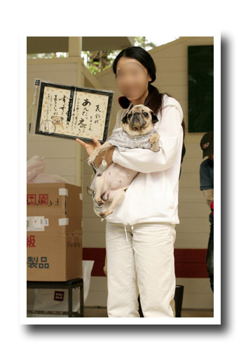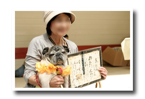 お次のイベントはご長寿さん表彰10歳になったパグちゃんは感謝状が贈られます〜。 |