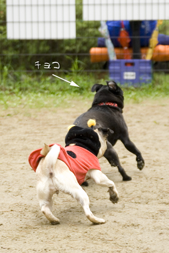 楽しそう〜!なパグ走りを見てチョコもちょっと寄り道。 |
