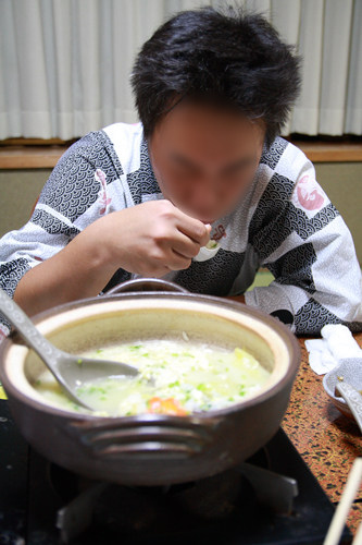 お鍋いっぱいの〆の雑炊までいただいて本当におなかいっぱい!! |