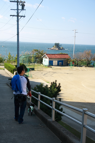 小・中学校の脇を通って東海の松島と呼ばれた歌碑公園を目指します。 |