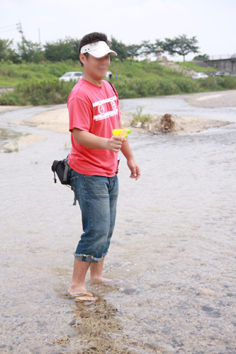 で、結局菰野町役場のお隣を流れる川で遊ぶことに。 |