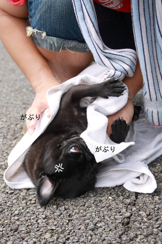 びっちょびちょになってますが、チョコちゃんは満足げ。 |