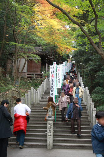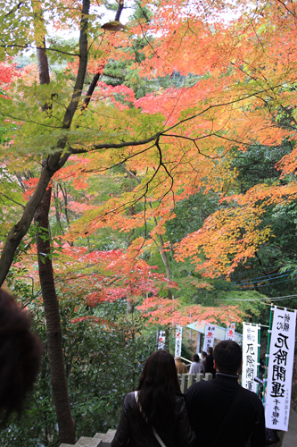 帰りの石段を下りながらて見たグラデーションがきれいなもみじ。 |