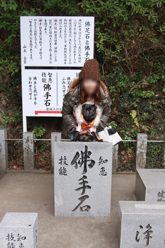 両手を石の手型に合わせると知恵と技能が授かるとのことでチョコちゃんも♪ |