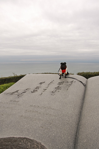 この旅唯一の家族写真なんて撮ってみたけど、お天気悪くてなんのこっちゃ、な写真なので。 |