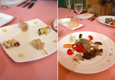 私は魚で手長海老のグリル。(海老が甘くておいしかった〜) |