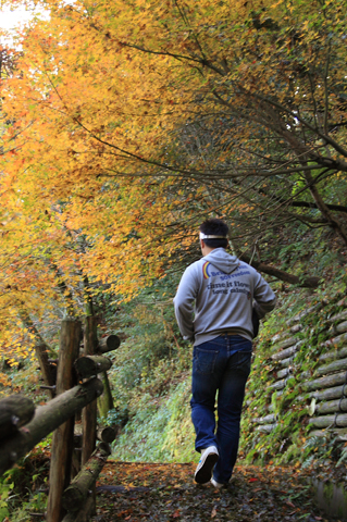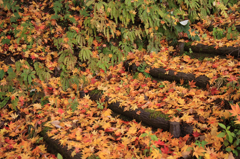 昨日の雨できれいに紅葉が散って美しい遊歩道。