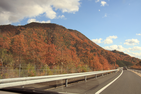 左側の山々は見事に紅葉していて、うっとり〜。 |
