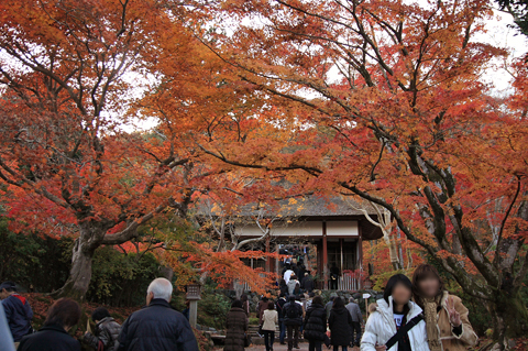 コケと紅葉の色の対比がすごくきれいなお寺さんだったけど、どこをとっても人が写るほどの混雑ぶり。