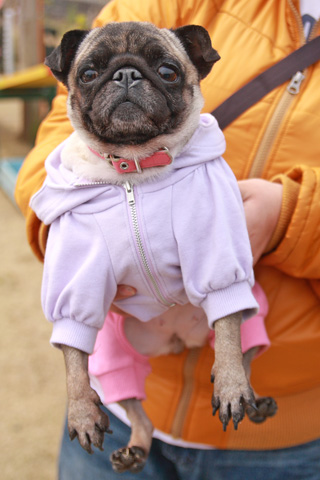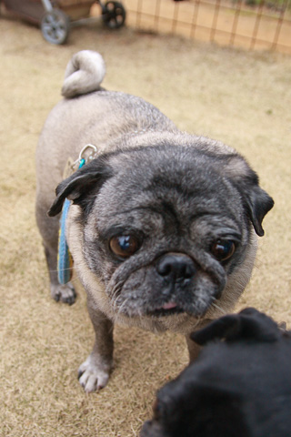 どんぐりママのママに保護された迷子の黒パグちゃん。
