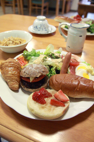 イチゴのイングリッシュマフィンに、ホットドッグ、ハンバーガー、クロワッサンサンド&シリアルのボリューム満点の朝ごはん♪