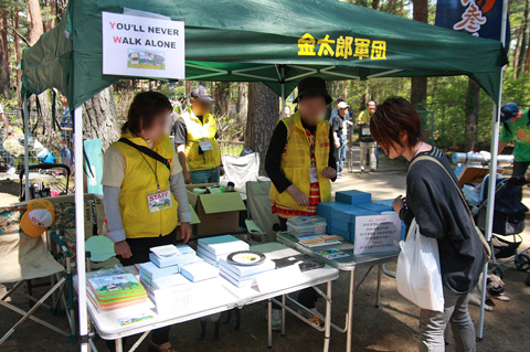 グッズ売り場のテントにいた本気くんと紅葉ちゃん。 |