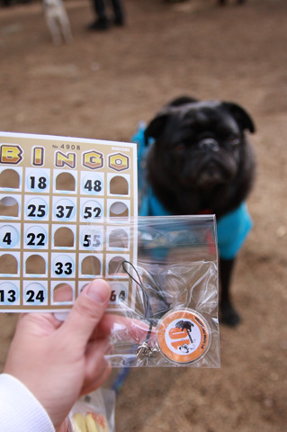 最後のイベント、ビンゴ大会がはじまりましたよ♪ 今年はなんと協賛企業さんから豪華賞品が提供され、何万円もするペット用カートやパグッズなどなど魅力的な景品がたくさん! でしたが・・・ |
