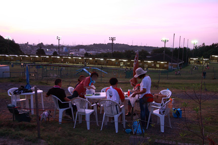 飲食OKのピクニックエリアに移動して、みんな持ち寄りごはんを食べながら花火鑑賞します♪ |