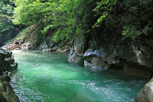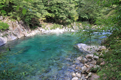 阿寺渓谷のほうがブルーが濃い感じ。