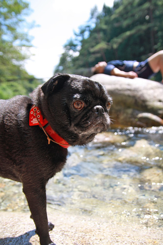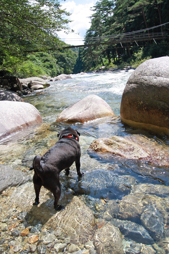 水が苦手なチョコも自ら川に入ってった〜。 |
