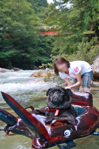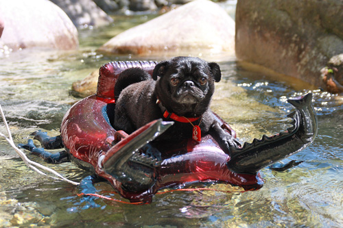 最初は少し怖がっていたチョコも、冷たくて気持ちいいのがわかったようで、ボートに乗ったままうとうとと・・・。 |