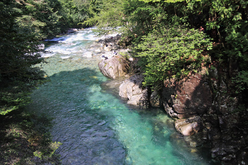 渓谷沿いは車道がほとんどで、川で遊べそうな下りられるところも少ないです。 |